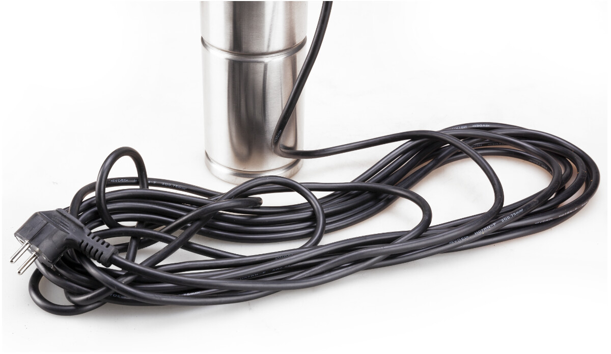 Pompele submersibile sunt utilizate pentru alimentarea cu apa curata si reprezinta solutia optima pentru un debit ridicat si stabil. Acestea se pot utiliza si in sistem hidrofor daca se adauga un vas expansiune, presostat, manometru si o supapa de sens/ presscontrol, sau in sistem de irigare automata daca se ataseaza un regulator de presiune. Pompele Submersibile cu Snec , sunt realizate cu un diametru de 4 inch, pentru a putea fi introdusa si in puturi cu diametrul redus, de pana la 110mm. Specificatii : Corp din INOX cu diametru de 4" Racire motor: in ulei Lungime cablu alimentare: 10 m, Temperatura maxima de lucru: 40 C Motor electric 230V/50Hz , 370W/500W cu carcasa de inox Debit maxim: 31.66 L/min ; Inaltimea maxima de pompare: 175 m Racord iesire : 1" ATENTIE! Nu utilizati pompa in puturi, piscine, iazuri sau rezervoare in care sunt persoane sau animale in imediata vecinatate a pompei sau in contact direct cu apa pompata;