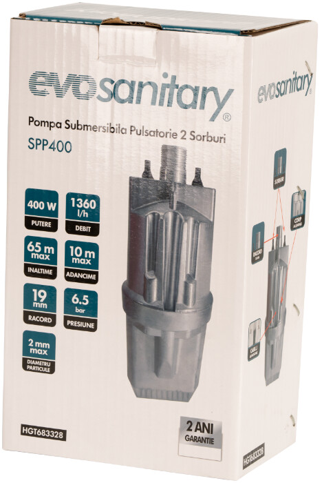 Pompa Submersibila Pulsatorie cu 2 Sorburi SPP este conceputa pentru alimentarea cu apa curata din puturi sau fantani de mica si medie adancime. Datorita celor doi sorburi de admisie, asigura o absorbtie uniforma, reducand uzura componentelor interne si mentinand o presiune constanta in instalatie. Este ideala pentru uz casnic, irigatii sau alte aplicatii domestice.