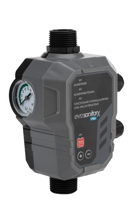 - Asigura oprirea pompei sesizand lipsa apei protejand-o in acest fel de defectiunile cauzate de functionarea fara fluid si se reseteaza automat dupa un anumit interval de timp;