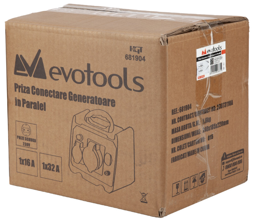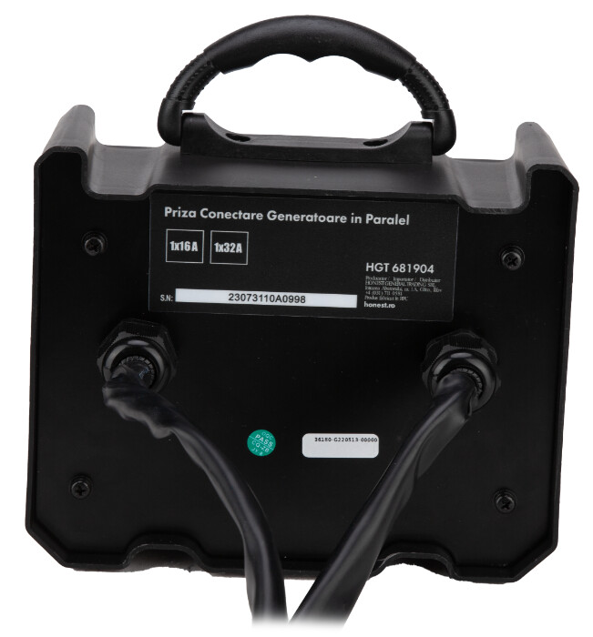 O priza de conectare a generatoarelor in paralel este un dispozitiv special conceput pentru a conecta doua generatoare electrice intr-un singur circuit. Acest lucru permite cresterea puterii totale disponibile si extinderea duratei de functionare a sistemului energetic. Cum functioneaza? Sincronizare : Priza asigura sincronizarea generatoarelor inainte de conectare, ceea ce inseamna ca acestea trebuie sa aiba aceeasi tensiune, frecventa si faza. Impartirea sarcinii : Dupa conectare, generatoarele impart sarcina in mod egal, crescand astfel capacitatea de alimentare a sistemului. Protectie : Dispozitivul include circuite de protectie care opresc automat generatoarele in caz de suprasarcina, scurtcircuit sau alte anomalii. De ce ai nevoie de o astfel de priza? Cresterea puterii : Pentru a alimenta consumatori cu putere mai mare decat poate furniza un singur generator. Redundanta : Pentru a asigura o alimentare continua in cazul defectarii unui generator. Extinderea duratei de functionare : Prin impartirea sarcinii, se reduce solicitarea individuala asupra fiecarui generator, crescand astfel durata de viata. Date tehnice: Prize Schuko: 1 x 16A + 1 x 32A Lungime cablu: 2 m Intrerupator circuit: DA ( max 10KW ) Impamantare: DA ATENTIE! Pentru a evita socurile electrice, nu utilizati firele deteriorate, precum si contactele deteriorate sau ruginite.