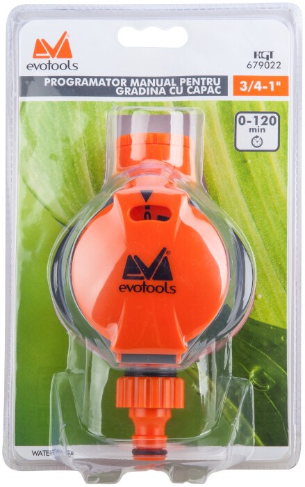 Este un dispozitiv simplu de tip timer cu ajutorul caruia puteti selecta o durata de udare de pana la 120 de minute si se va opri automat, reducand astfel risipa de apa.