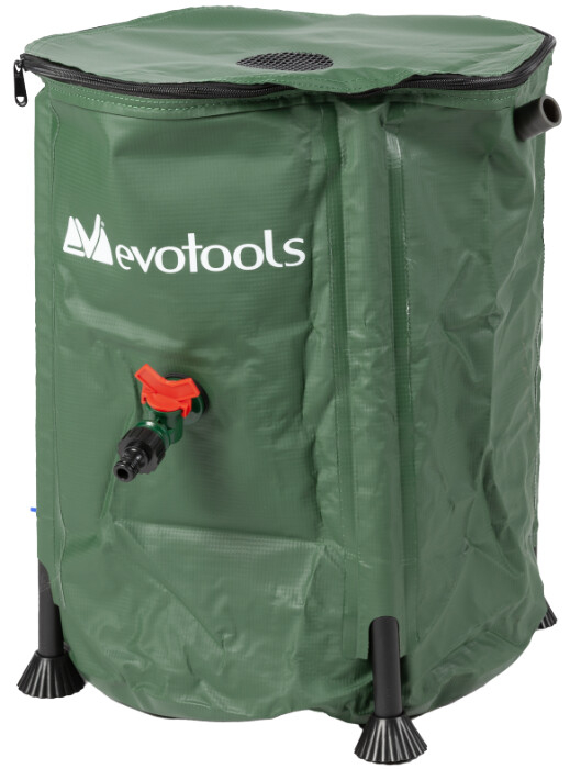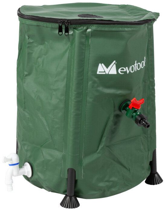 Acest tip de rezervor este fabricat din PVC rezistent la rupere, fiind sustinut cu ajutorul unor suporti (tije) din ABS care ii confera stabilitate. In partea superioara, capacul este prevazut cu o sita pentru a impiedica frunzele sa patrunda in rezervor. Rezervorul este echipat cu 3 orificii de evacuare a apei. In partea superioara exista un stut din PP, folosit ca preaplin, cu posibilitatea de a conecta un furtun cu diametrul de 25 mm.