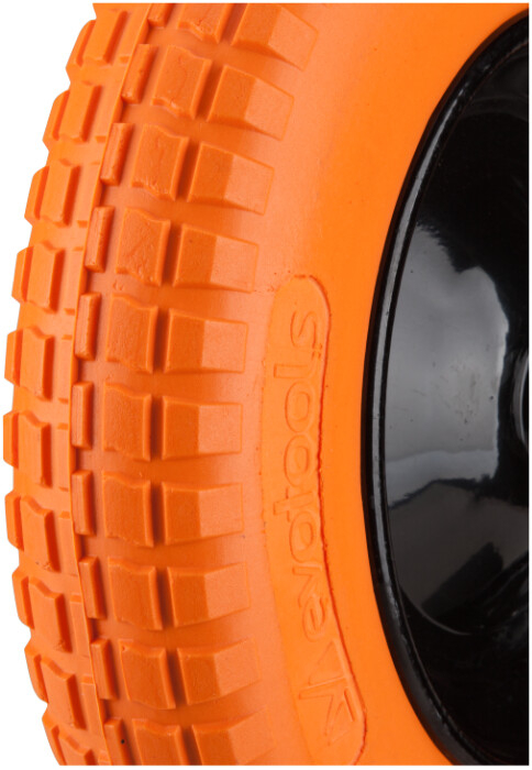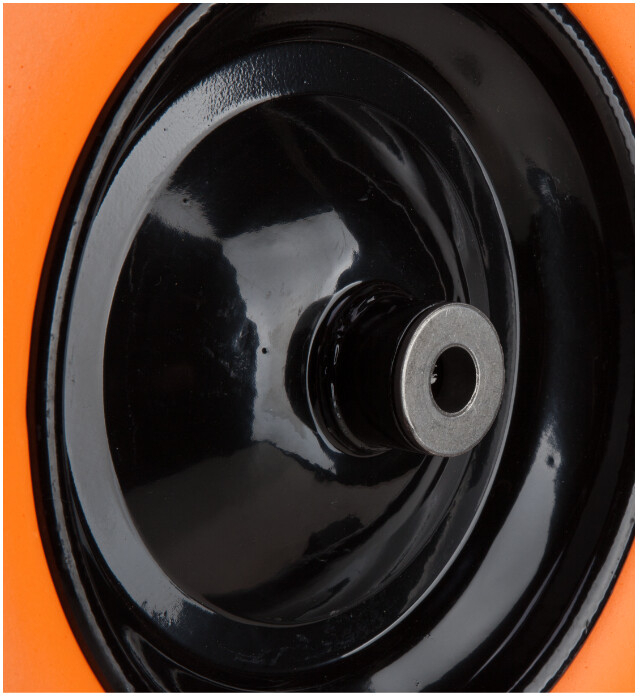 Roata Roaba plina Poliuretan Slim cu Janta Metalica A EvoTools este o roata construita pe suport din metal si parte activa plina, din spuma poliuretanica, ceea ce confera un grad 0 de perforare si spargere fata de rotile clasice cu camera pe aer, dar acelasi confort in utilizare. Aceasta are bucsa sinterizata cu diametrul interior de 16 mm.