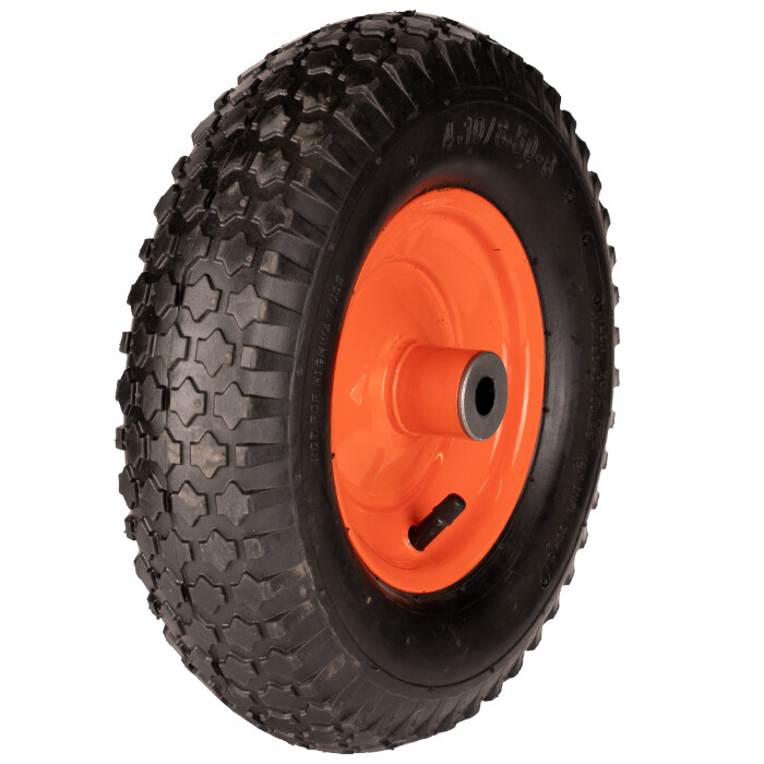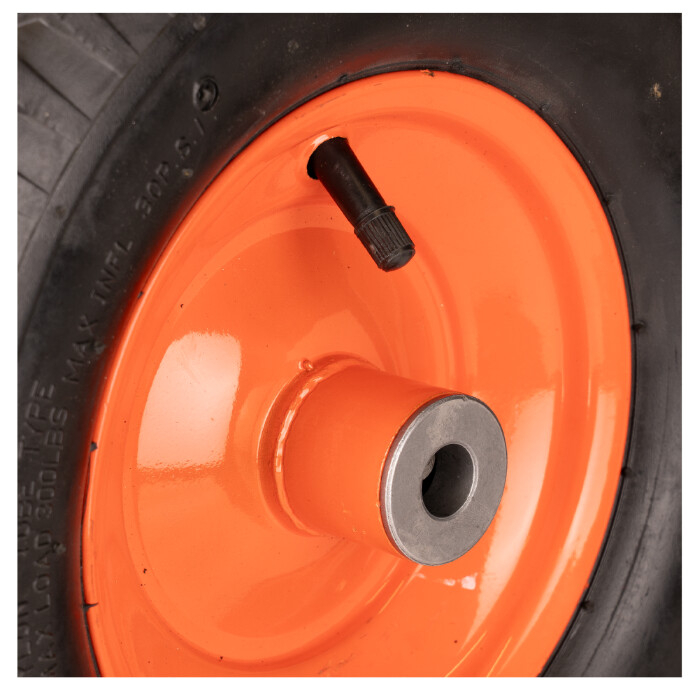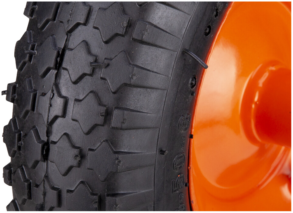 Roata Pneumatica Tip P cu Janta Metalica Evotools este o roata construita pe suport din metal, cu camera cu valva auto, pneu de cauciuc alcatuit din 2 panze si rulment cu bile cu diametrul interior de 16 mm. Aceasta rezista la o presiune maxima de 3 atm si se utilizeaza la carucioare si roabe actionate manual.