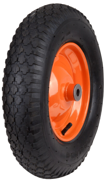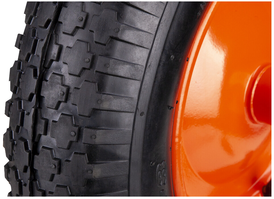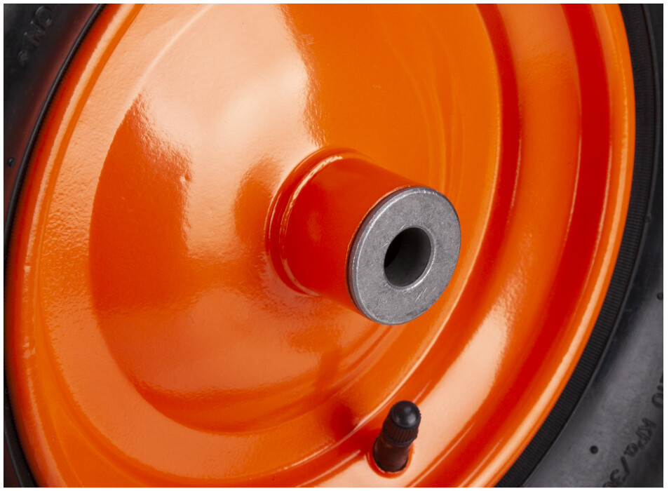 Roata Pneumatica CF cu Janta Metalica Evotools este o roata construita pe suport din metal, cu camera cu valva auto, pneu de cauciuc alcatuit din 2 panze si bucsa sinterizata cu diametrul interior de 16 mm. Aceasta rezista la o presiune maxima de 3 atm si se utilizeaza la carucioare si roabe actionate manual.