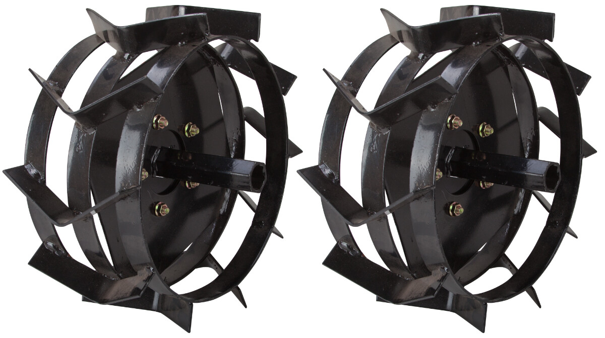 Rotile metalice cu manicot pentru motosapa si motocultor sunt confectionate din otel, acoperit cu un strat de vopsea. Se monteaza direct pe motocultor, in locul rotilor de transport. Se folosesc pentru a mari aderenta motosapei/motocultorului in timpul prelucrarii terenurilor agricole. Manicotul este confectionat din acelasi material ca si cel folosit la confectionarea rotile si se fixeaza in rotile metalice cu 5 suruburi. Acesta se potriveste cu motosapele/motocultoarele al caror ax de iesire la transmisie este hexagon de 23.5 mm, cu gaura de fixare a boltului la 40 mm de la margine.