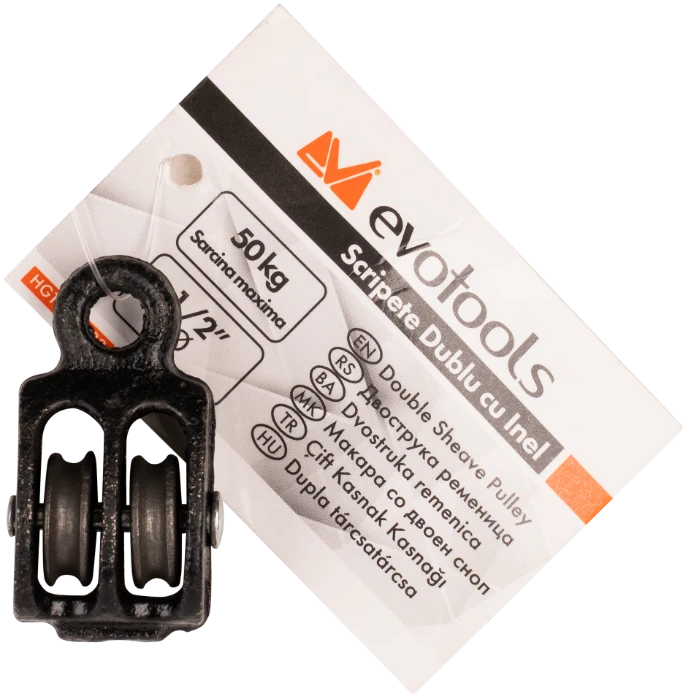 Scripetele dublu cu inel este un tip de scripete care are doua inele, unul in partea superioara si unul in partea inferioara. Inelele sunt conectate printr-o fulie transversala. Fulia transversala are un canal in interiorul acesteia, prin care trece franghia sau cablul. Scripetele este componenta principala, care consta intr-un sistem de scripeti sau brate, care permit ridicarea sau coborarea incarcaturilor. Este proiectat sa ofere o rezistenta si stabilitate adecvata pentru manipularea incarcaturilor. Inelul poate fi folosit pentru atasarea scripetelui la un alt dispozitiv sau pentru conectarea la alte mijloace de ridicare sau sustinere. Acest scripete este utilizat intr-o varietate de domenii, inclusiv in constructii, in industria manufacturiera, in ridicarea de echipamente si in alte situatii in care este necesara manipularea incarcaturilor grele.