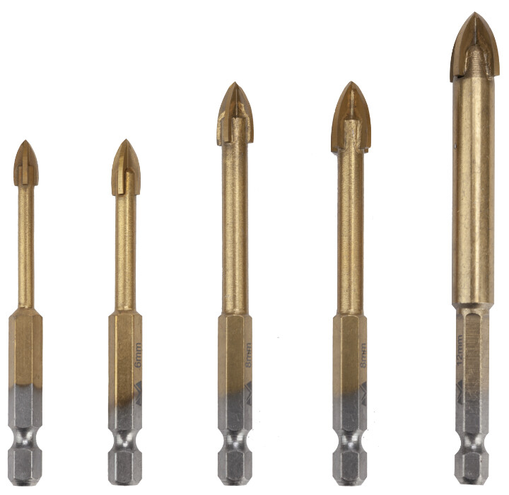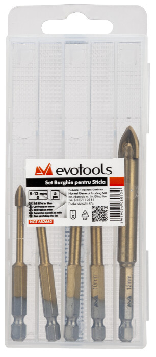 Setul este alcatuit din 5 burghie cu diametrul de 5,6,8,10 si 12 mm