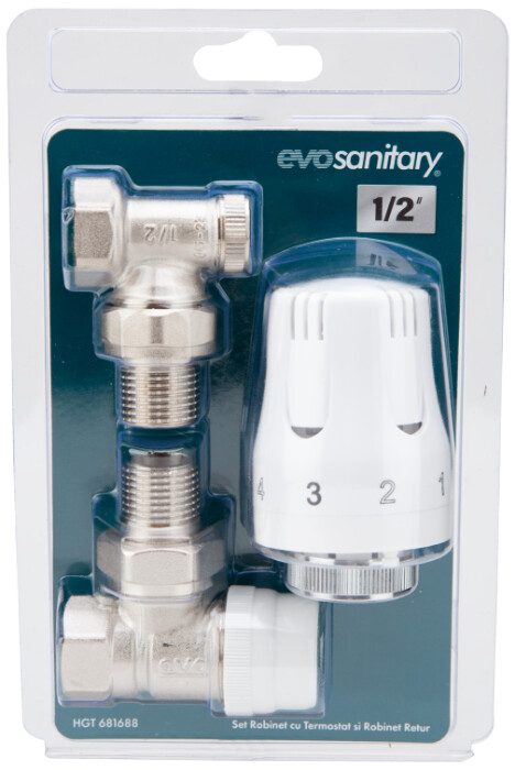 Un set de robinet cu termostat si robinet de retur este un ansamblu de componente utilizate in sistemele de incalzire centralizata. Robinetul cu termostat este proiectat sa regleze automat temperatura agentului termic (de obicei apa) care circula prin calorifer sau sistemul de incalzire. Acesta permite utilizatorului sa ajusteze si sa mentina temperatura dorita in incapere. Pe de alta parte, robinetul de retur are rolul de a controla fluxul de agent termic care se intoarce la sursa de caldura, asigurand o circulatie eficienta a apei in intregul sistem de incalzire. Aceste doua componente lucreaza impreuna pentru a mentine o temperatura confortabila in incaperi, oferind totodata eficienta energetica si economisind resurse. Seturile de robinete cu termostat si robinete de retur sunt esentiale in sistemele moderne de incalzire centralizata, contribuind la reglarea si optimizarea consumului de energie. Setul contine: 1x Robinet cu termostat 1x Robinet retur