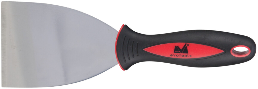 Spaclul TPR 2002 EvoTools are lama confectionata din inox de cea mai buna calitate si manerul bicomponent confectionat din polipropilena si cauciuc termoplastic (TPR). Lama are o latime de 75 mm si o grosime de 1.4 mm, avand o flexibilitate mare in timpul utilizarii. Manerul ergonomic va ofera o priza optima in timpul utilizarii, eliminand riscul de alunecare. Este utilizat la renovarea si finisarea suprafetelor, inclusiv aplicarea ipsosului sau razuirea murdariei de pe suprafete.