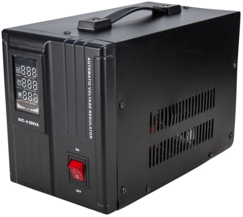 Stabilizatorul de tensiune, este un aparat electric ce stabilizeaza tensiunea electrica in jurul valorii de 220V/230V, protejand astfel echipamentele electrice si electrocasnice impotriva fluctuatiilor de tensiune. Datorita constructiei robuste si a componentelor de calitate, s-a reusit atingerea unui factor de putere de 0.8, avand astfel un raport pret/calitate foarte bun. Desi stabilizatorul reuseste sa functioneze in intervalul 150-280V tensiune la priza, trebuie tinut cont de faptul ca la un voltaj mic de intrare, puterea totala la iesire scade cu pana la 50%.