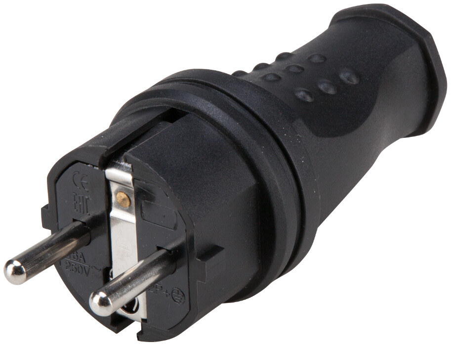 Stecherul din cauciuc Schuko reprezinta un conector electric utilizat pentru a alimenta dispozitive electronice sau electrocasnice intr-o priza de tip Schuko (compatibila cu prizele europene standard). Stecherul din cauciuc Schuko este o solutie practica si durabila pentru conectarea echipamentelor la reteaua electrica, furnizand in acelasi timp confort si siguranta in utilizare, 16 A.