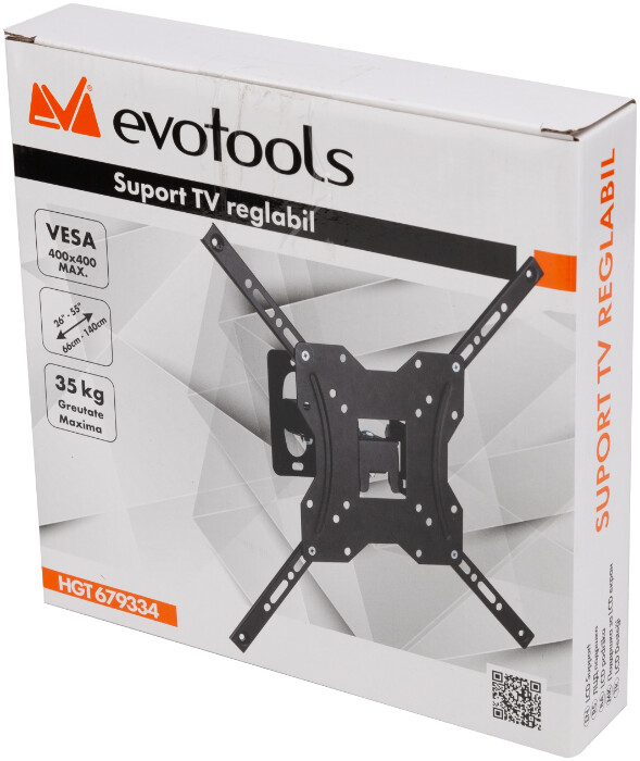 Un suport TV reglabil este un dispozitiv de fixare care permite montarea televizoarelor pe perete si ofera optiunea de a ajusta unghiul de vizualizare. Acest lucru poate fi util pentru a obtine un unghi de vizualizare mai bun, in special daca televizorul este amplasat pe un perete sau intr-un colt. Specificatii: Greutatea maxima suportata este de 35 kg. Acest dipozitiv este compatibil cu un TV cu diagonala de 26 inch - 55 inch ( 66-140 cm ). Reglare unghi inclinare in plan vertical: -15° - +10°. Reglare unghi inclinare in plan orizontal: + / - 90°. ATENTIE! Deconectati alimentarea cu energie electrica a televizorului inaintea inceperii montajului.