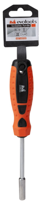 Surubelnita port-biti EvoTools are partea activa confectionata din otel Cr-V de cea mai buna calitate, tratat termic, cu sistem magnetic de fixare a capetelor. Manerul bicomponent confectionat din polipropilena si cauciuc termoplastic (TPR) va ofera o priza optima si un confort sporit in timpul utilizarii. Pinderea are dimensiunea 1/4".