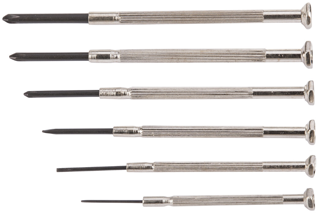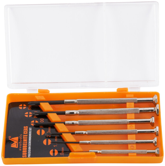 Setul contine : 6 surubelnite cu maner metalic nichelat , cap pivotant si varf magnetic Philips PH00, PH0, PH1) Profil drept: 1, 1.4, 1.8 mm