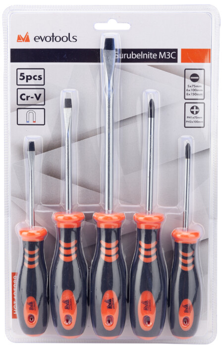 Set format din : 2 surubelnite cruce: PH1x75mm, PH2x100mm;