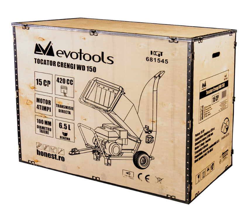 Tocatorul pentru Crengi WD150 cu Transmisie pe Curea este echipat cu un motor puternic in 4 timpi, racit cu aer ce dezvolta o putere de 15 CP si 3600 rpm, avand o capacitate cilindrica de 420 cc.