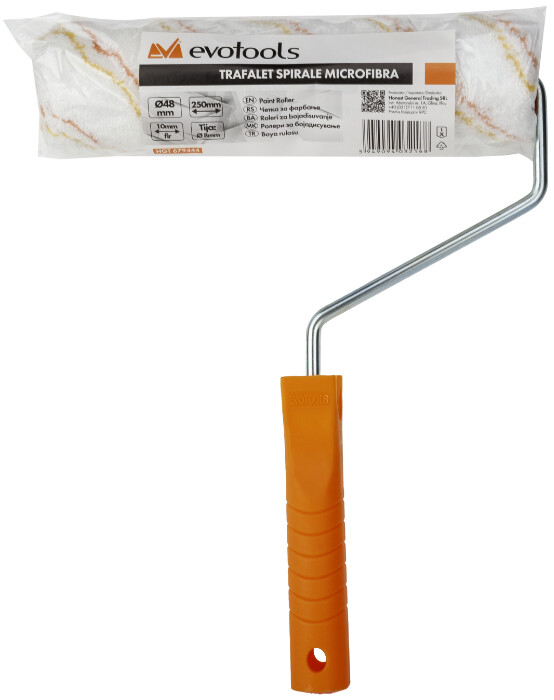 Trafaletul EvoTools este solutia ideala pentru a va renova locuinta sau vopsi diverse suprafete din locuinta dumneavoastra. Trafaletul are suportul de fixare al ruloului confectionat dintr-o tija de otel cu grosimea de 8 mm si un maner din polipropilena rezistent la socurile mecanice. Ruloul confectionat din microfibra, cu lungimea firului de 10 mm, retine o cantitate optima de vopsea, astfel incat sa vopsiti uniform suprafetele.