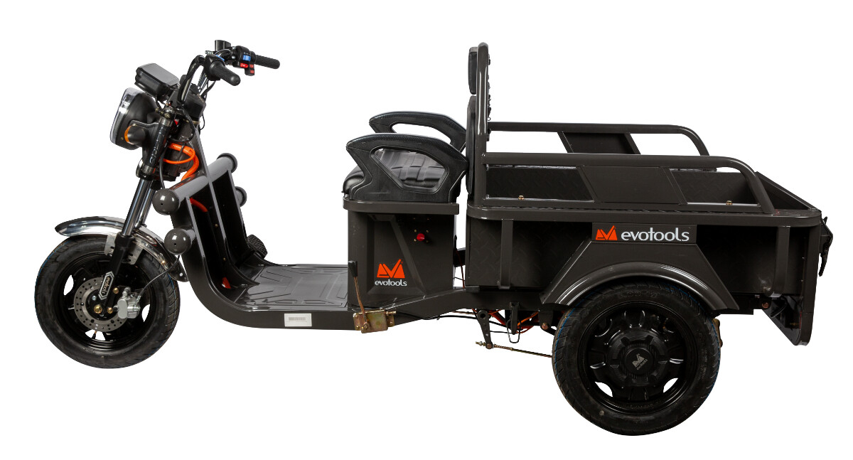 Triciclul electric Cargo TRCC800 EvoTools este propulsat de un motor brushless cu o putere nominala de 800W. Motoarele brushless sunt alegerea ideala in cazul vehiculelor electrice, deoarece nu au forta de frecare cauzata de periile motoarelor clasice cu perii. Prin urmare, ele transforma mult mai mult din energia electrica produsa in energie utilizabila, oferind o autonomie mai mare vehicului, in acest caz aproximativ 35-45 km (in conditii optime).