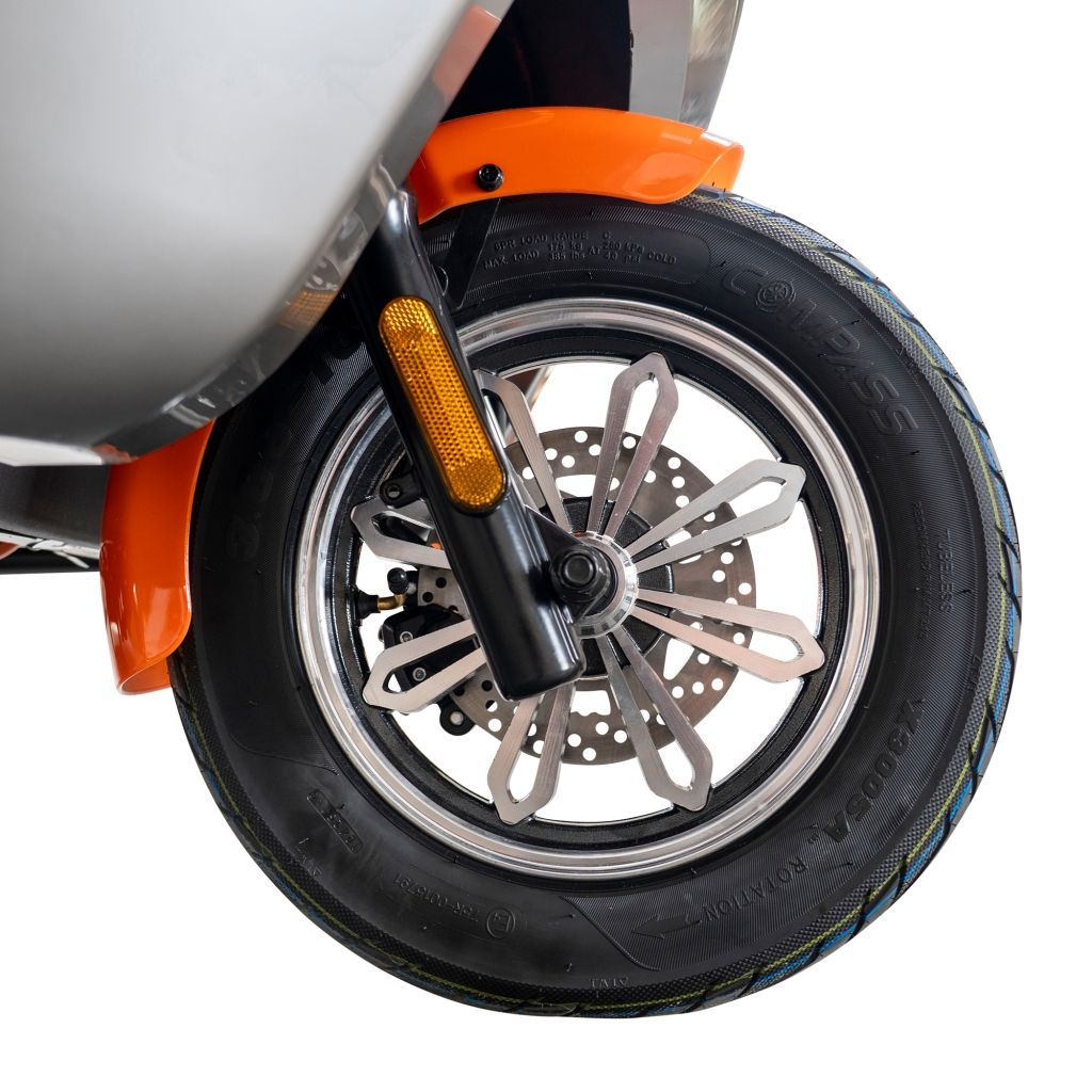 Triciclul electric RURIS Pilot 3070A este dotat cu un sistem de frânare combinat, care include frână disc față și frână tambur în spate — o configurație ce oferă un echilibru excelent între siguranță, eficiență și durabilitate.