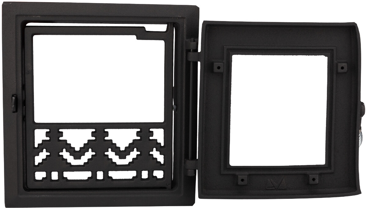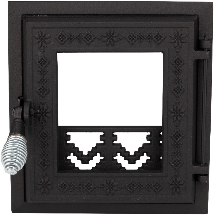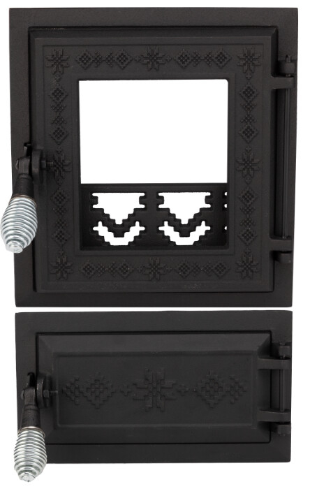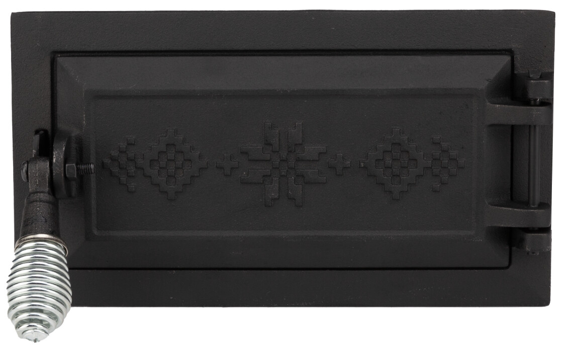Usa pentru soba cu cenusar este confectionata din fonta cenusie turnata cu model reliefat, acoperita pentru rezistenta la coroziune cu vopsea neagra mata. Aceasta vine echipata cu manere ceramice si platbanda pentru montaj.