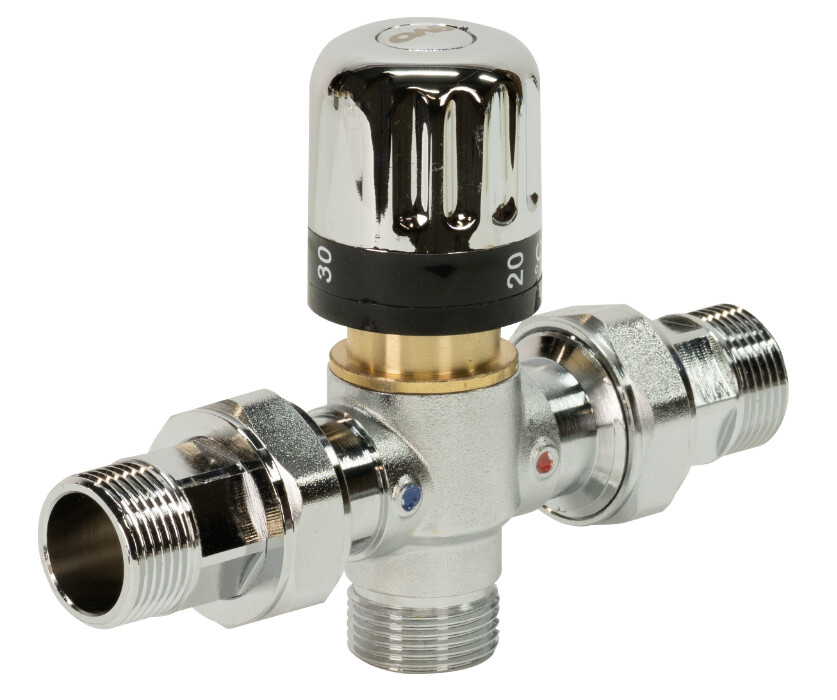 Vana termostatica de amestec Evosanitary, cu racorduri de tip hollender 3/4”, este proiectata pentru a asigura un control precis al temperaturii apei amestecate, oferind siguranta, confort si eficienta energetica in instalatiile sanitare. Ideala pentru aplicatii rezidentiale si comerciale, aceasta vana mentine constanta temperatura apei livrate, indiferent de variatiile presiunii sau temperaturii din retea.