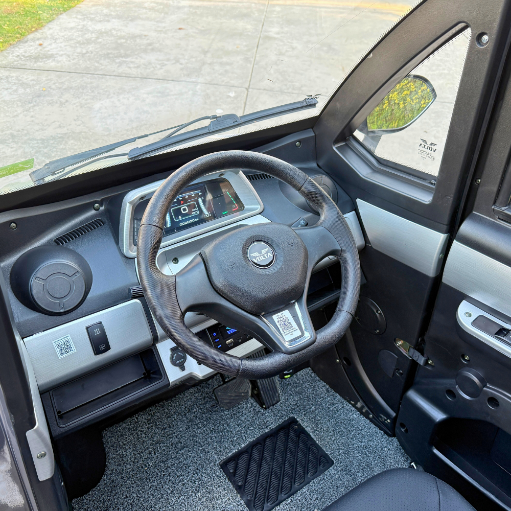Volta EV1 este un vehicul electric cu patru roți, gândit să ofere șoferilor o experiență de condus confortabilă, sigură și prietenoasă cu mediul, zi de zi.